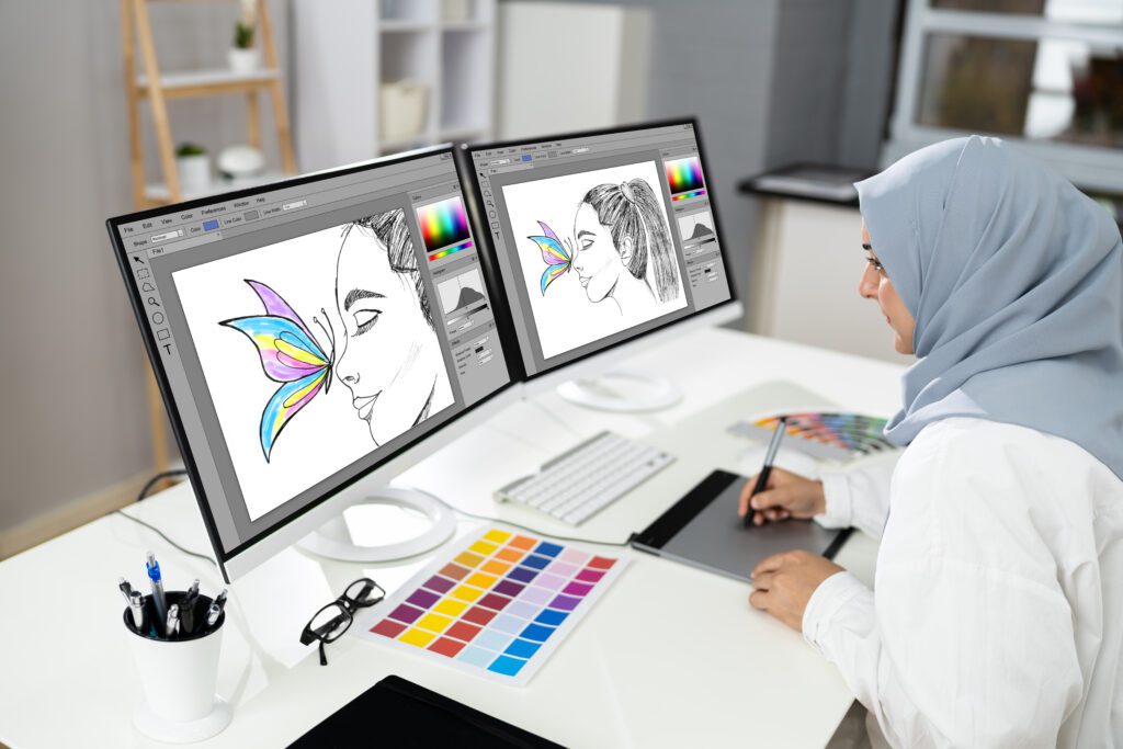 - Software de diseño: Aprenderás a utilizar las herramientas digitales más populares en el mundo del diseño gráfico, como Adobe Photoshop, Illustrator e InDesign.